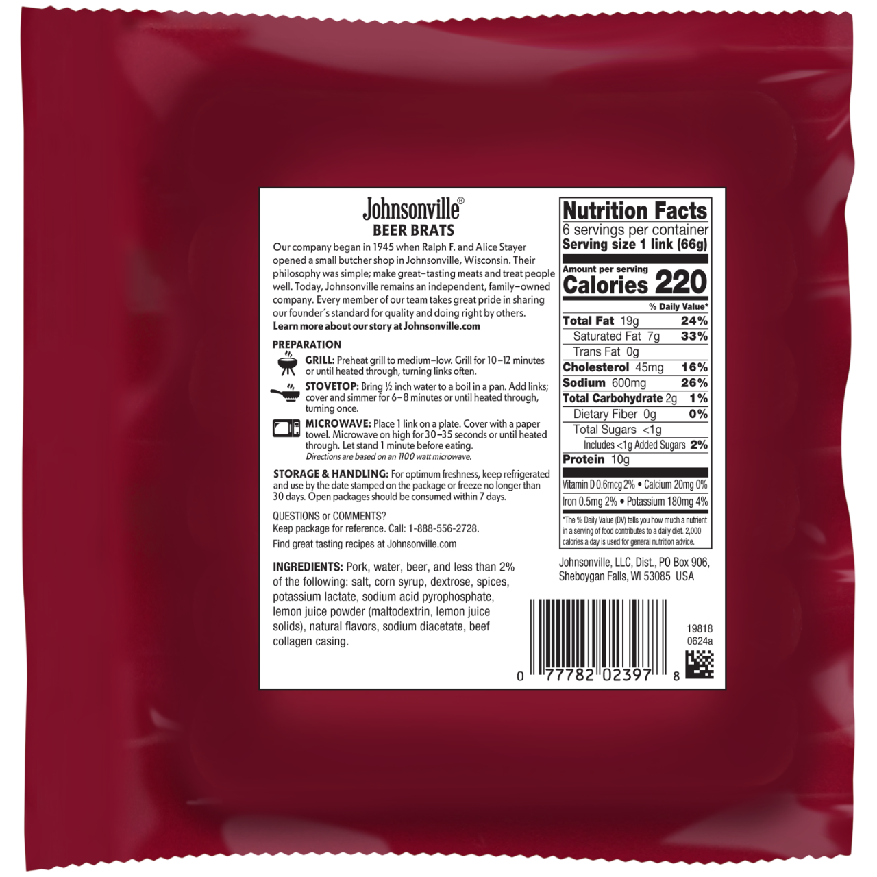 When it comes to beer brats, there is only one worthy of your grill. Johnsonville Beer Brats are made with quality Wisconsin beer and only premium cuts of pork, delivering a juicy, robust flavor. Perfect for summer cookouts, Johnsonville Beer Brats are easy to grill and add a flavor to a wide range of recipes.