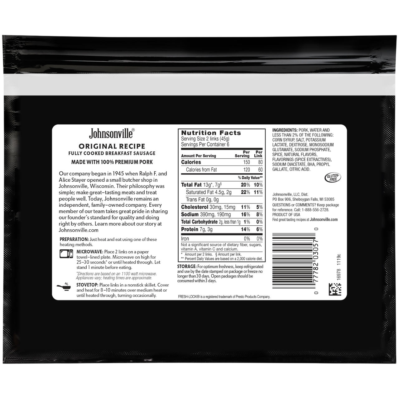 Start your the flavorful way with Johnsonville Fully Cooked Original Breakfast Sausage! Made with only premium cuts of pork and a perfect blend of spices, these delicious, pre-cooked sausages are perfect for quick breakfasts before school or work. Our cooked breakfast sausages are a quick, easy choice the whole family will love. Crafted from premium ingredients for a delightful breakfast experience.