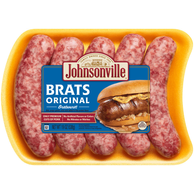 The original family recipe that started an American fun food revolution, it’s Johnsonville Original Brats! They’re made with only premium cuts of pork and seasoned with a secret blend of herbs and spices, delivering a juicy, robust flavor. These bratwurst sausages are perfect for summer cookouts, Johnsonville Original Brats are easy to grill and taste great in a variety of recipes as well! Fire up the grill and cook ’em low and slow!